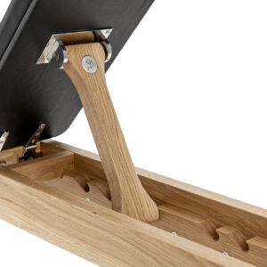 As with all of our products, a wide range of finishes are available for this custom gym bench as standard – and we encourage clients and designers to suggest their own material finishes for the frame, metal hardware and leather pads.