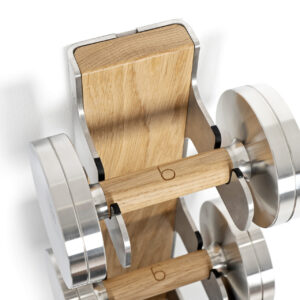 The Paragon Wall Rack features materials found on the dumbbells, further enhancing their luxury elements. To safely store each weight, particularly onboard superyachts, the rack can have fastenings with wooden inserts to match the handles.