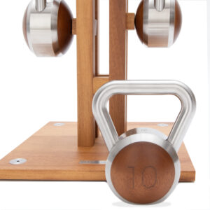 Crafted with meticulous attention to detail, the Paragon Studio Kettlebell Tree Rack is available in a selection of premium woods: Oak, Iroko, American Walnut, and Blackwood. These high-quality materials ensure not only durability but also an elegant aesthetic that complements any gym decor.