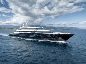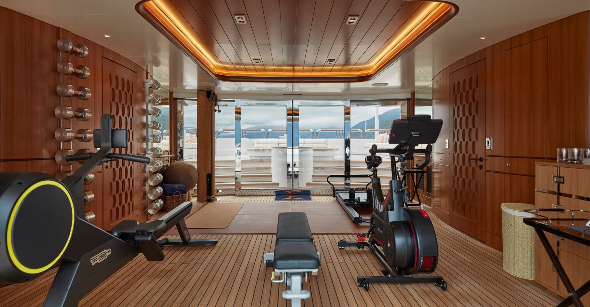 This gorgeous Feadship yacht underwent a refit in 2023 after a change of ownership, during which the gym was relocated to the top deck underneath the mast.